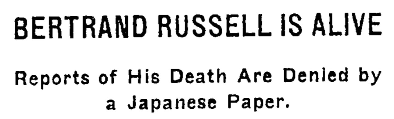 Doing a little fact-checking on this story, I found that this headline has been inaccurate since 1970. (Bertrand Russell lived a long time!) Hopefully the Times will issue a retraction.