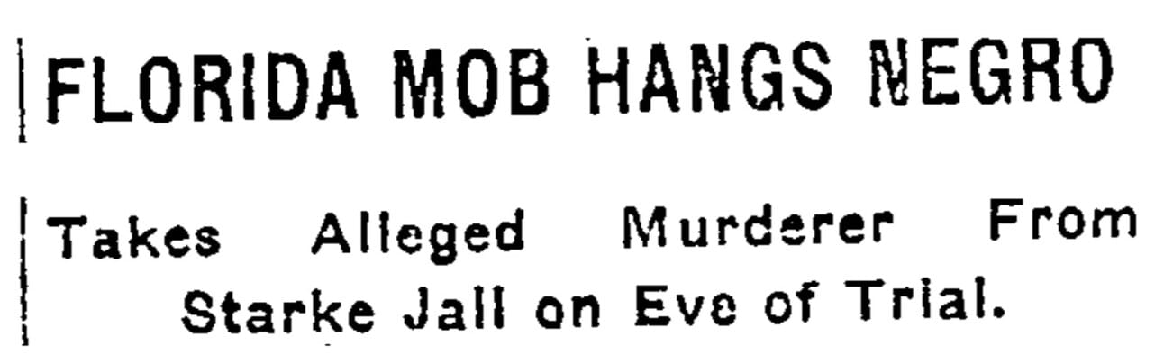 An absolutely horrifying tragedy. Ballinger was one of six Black men lynched in Florida in 1921, and this is one of five known lynchings recorded in Bradford County. For more information about reading newspaper sources on lynchings, I recommend this guide.