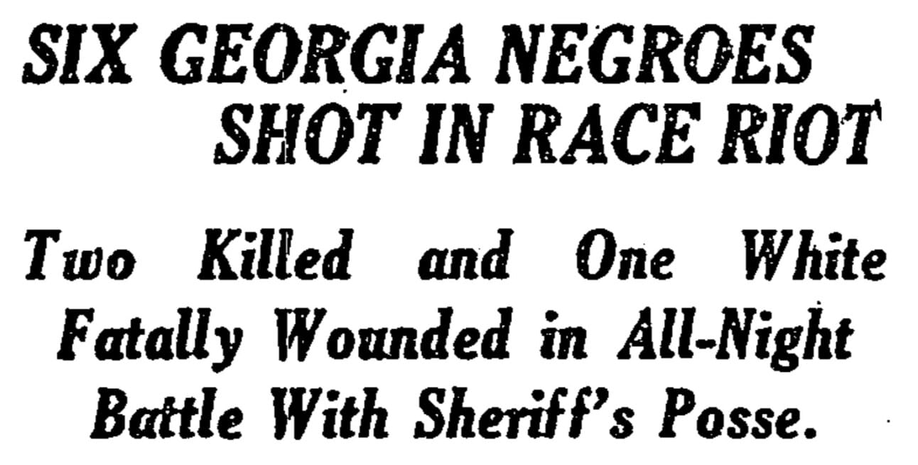 We are all enlightened enough, I hope, to be suspicious of the phrase “race riot,” as well as the testimony of the posse. I have no way of knowing what really happened in Byromville, but I am certain this is not even half the story.