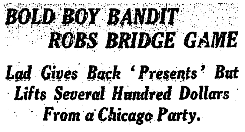 We follow last month’s tale of Bronx Boy Bandits with this yarn about a Bold Boy Bandit who understood the secret to a perfect robbery is to steal from people who are too rich or drunk to care.