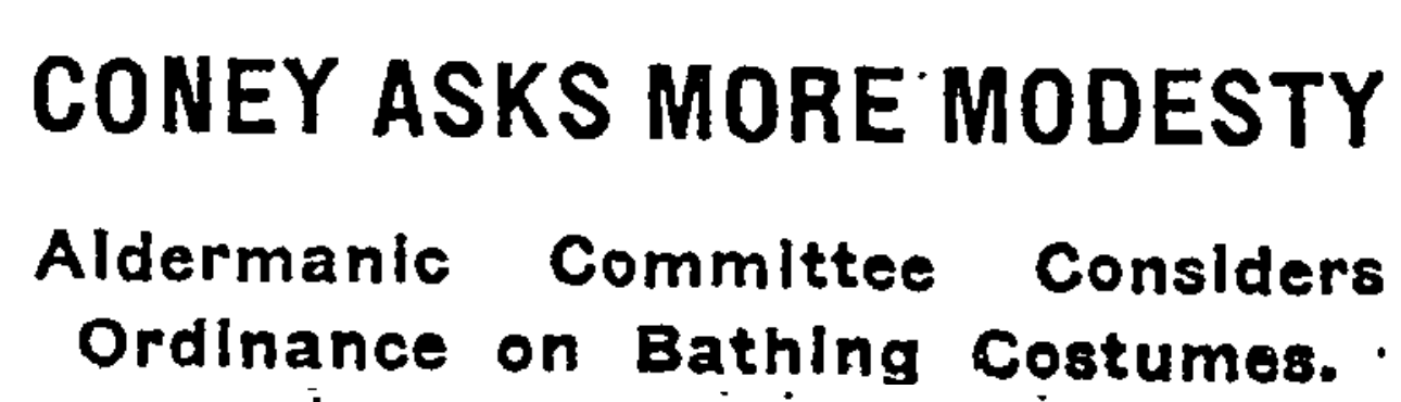 The ordinance, if enacted, will affect all other beaches within the city, but the appeal for bathing costume regulation has come principally from residents of Coney Island. Patrick H. Loftus, a lawyer representing residents of Coney Island, told the committee that something should be done to regulate men’s bathing suits.