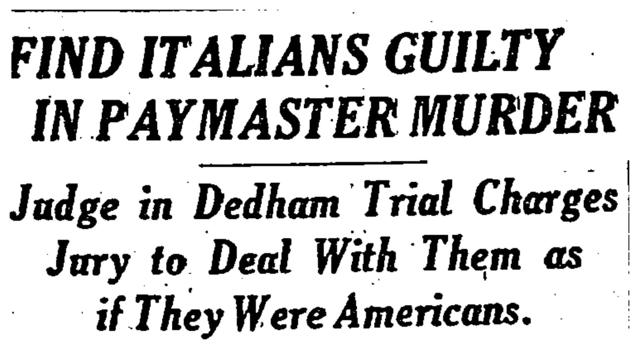 “In the administration of our laws there is and should be no distinction between parties,” he said. “I therefore beseech you not to allow the fact that the defendants are Italians to influence or prejudice you in the least degree. They are entitled to the same rights and consideration as though their ancestors came over in the Mayflower.”