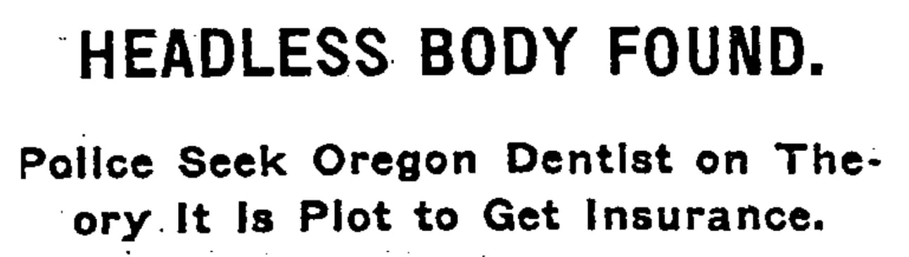 ROSEBERG, Ore., July 15.—The police were today seeking Dr. R.M. Brumfield, a dentist who is missing, following the finding of a headless body under Brumfield’s wrecked and burned automobile. Two identifications of the body were made, one by the dentist’s wife and another by friends of Dennis Russell, a laborer.
