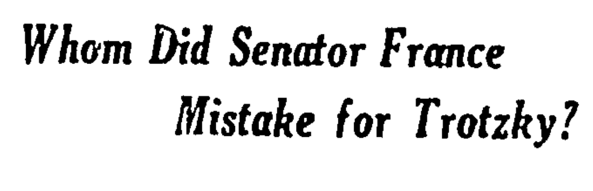 The Senator stated here on more than one occasion that he had been greatly impressed with his interview with Trotzky—“a big man doing a big job in a big way”—whom he declared to be a typical big blond with blue eyes of the Nordic type. He maintained this description against all comers, to the general bewilderment.