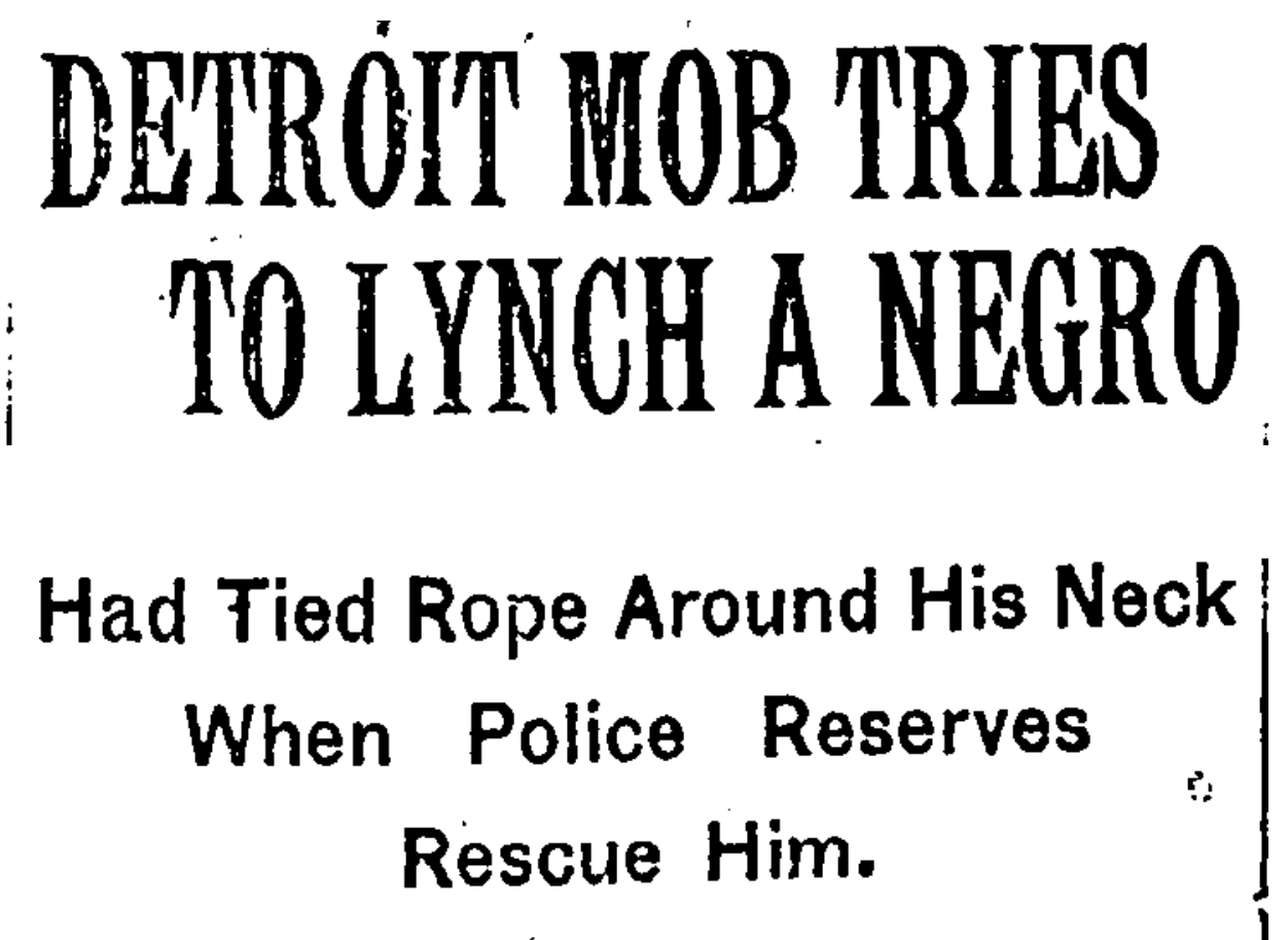 Griggs was saved by the arrival of local police and reinforcements from Hamtramck, a suburb, after a crowd of men and boys and severely beaten him with fists and baseball bats, and had tied a rope around his neck with the announced intention of hanging him.