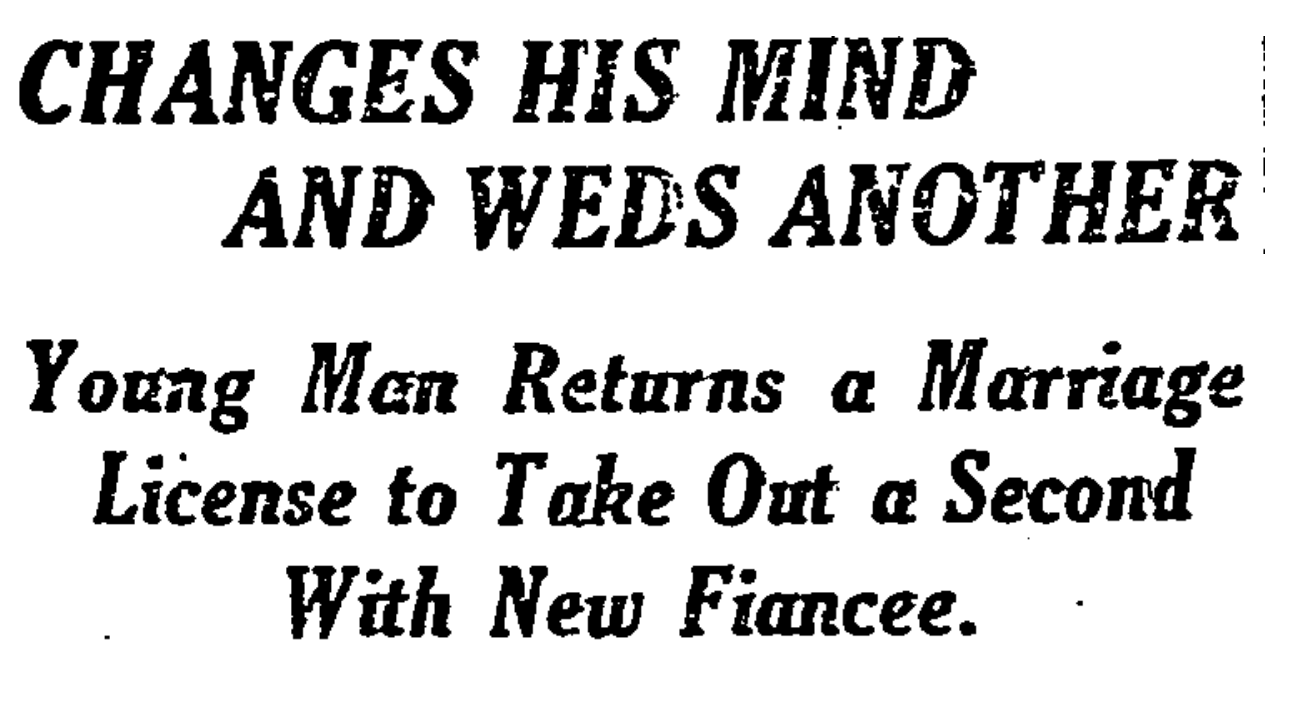 MONTGOMERY, N.Y., Aug. 26.—Usurping the age-old right of woman to change her mind on the brink of marriage, Lawrence Donnelly on Aug. 16 obtained a license to marry one of his sweethearts and four days later got a second license and married another. One explanation is that he changed his mind. Another is that Lawrence was a “love strategist.”