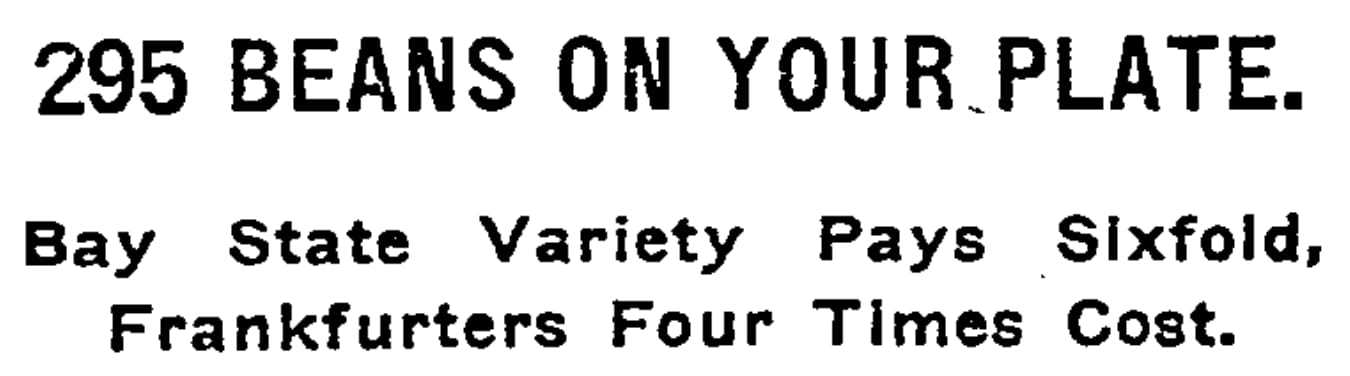 BOSTON, Aug. 26.—The average plate of baked beans served in arm-chair lunch rooms in Boston contains 295 beans, which, together with bread and butter furnished with it, costs about 2.5 cents, the State Commission on Necessaries of Life reported today. The usual charge to the public is 15 cents, the commission’s investigators found.